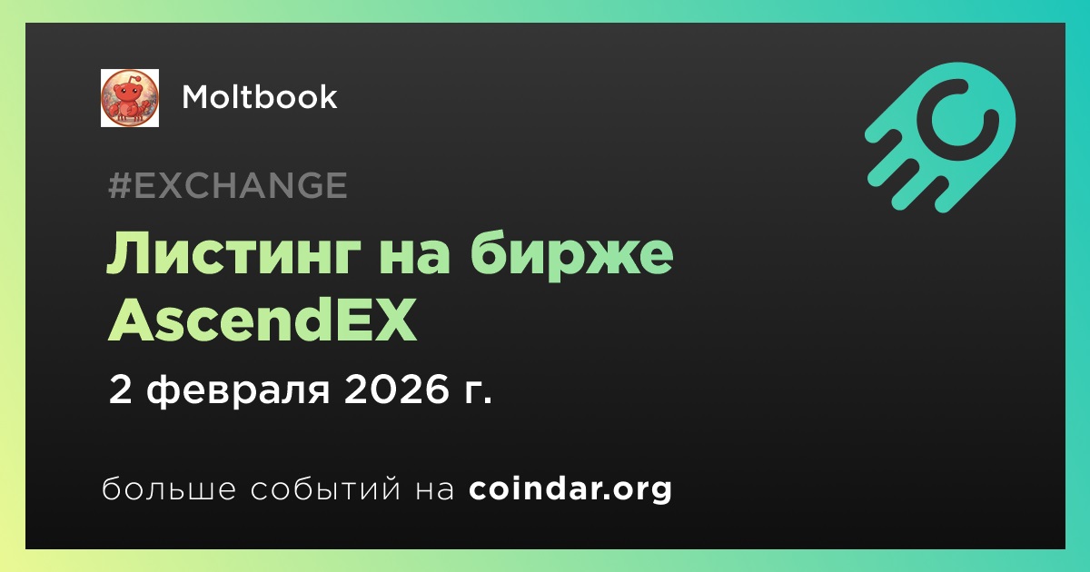 AscendEX проведет листинг Moltbook в рамках торговой пары MOLT/USDT 2 февраля.