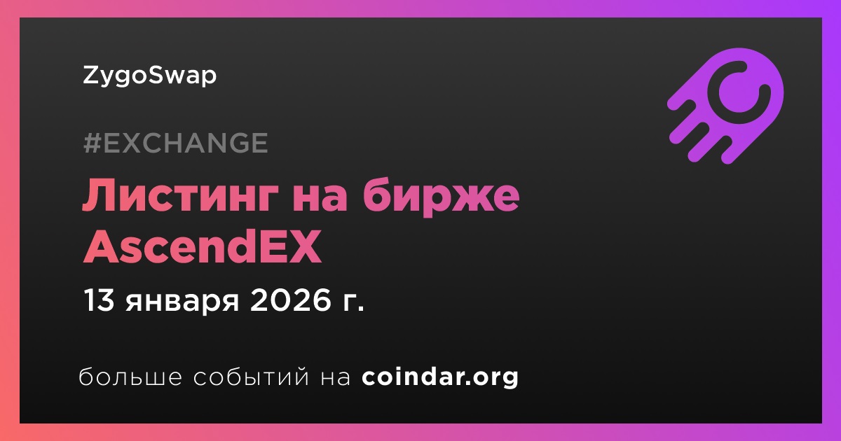AscendEX проведет листинг ZygoSwap в рамках торговой пары ZSWAP/USDT 13 января.