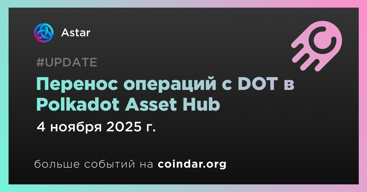 Astar Network объявила о запланированном техническом обслуживании 4 ноября, в рамках которого балансы DOT, функции стейкинга и механизмы управления будут перенесены с Polkadot Relay Chain в Polkadot Asset Hub.