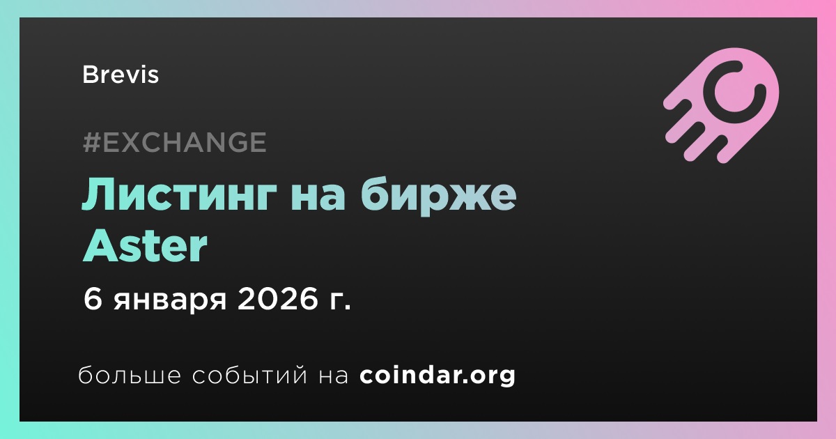 Aster проведет листинг Brevis (BREV) 6 января в 14:00 по UTC.