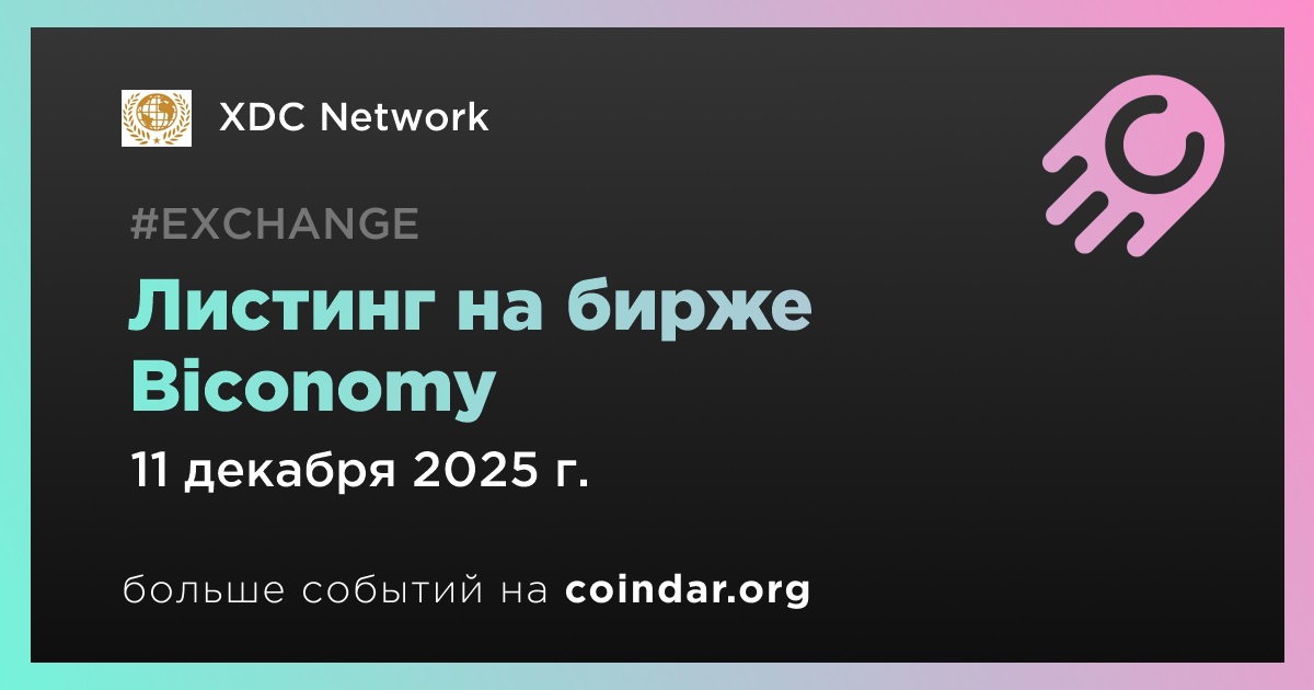 Biconomy проведет листинг XDC Network (XDC) в рамках торговой пары XDC/USDC 11 декабря в 12:00 по UTC.