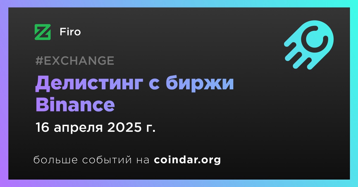 Binance проведет делистинг Firo (FIRO) 16 апреля в 3:00 по UTC.