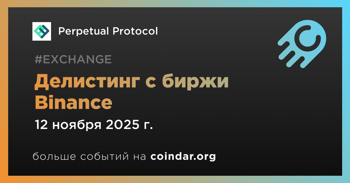 Perpetual Protocol будет исключён из листинга биржи Binance 12 ноября 2025 года вместе с Flamingo (FLM) и Kadena (KDA), согласно заявлению торговой площадки.