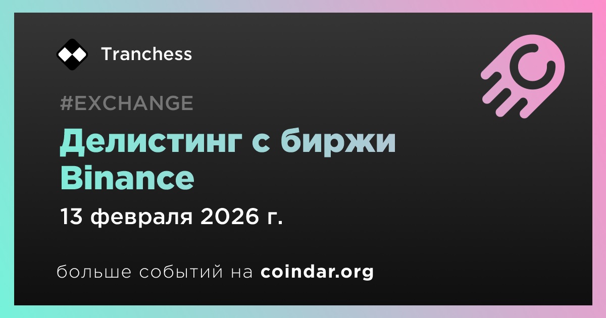 Binance исключит Tranchess (CHESS) из листинга и прекратит торговлю по всем спотовым торговым парам 13 февраля в 3:00 по UTC.