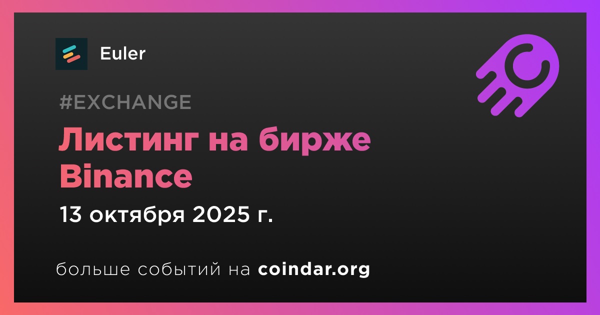 Binance станет 27-й по величине среди бирж, на которых представлена криптовалюта Euler