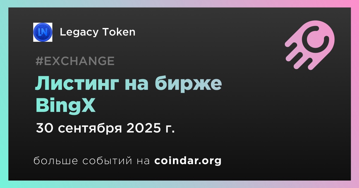 BingX проведет листинг Legacy Token (LGCT) 30 сентября в 13:00 по UTC.