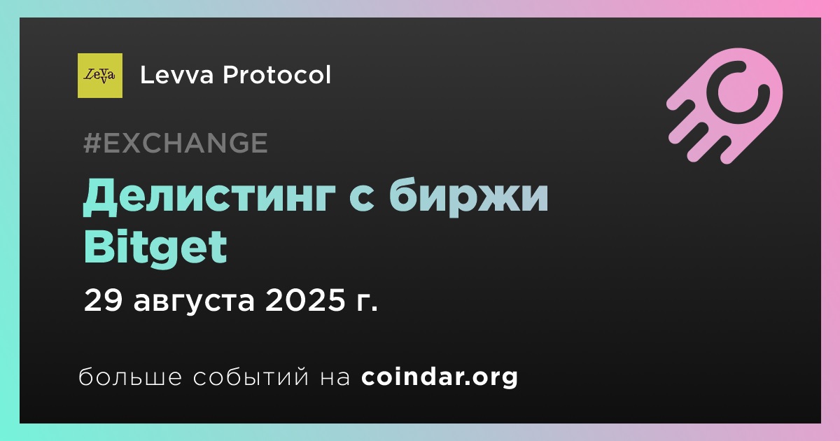 Bitget проведет делистинг Levva Protocol (LVVA) 29 августа.