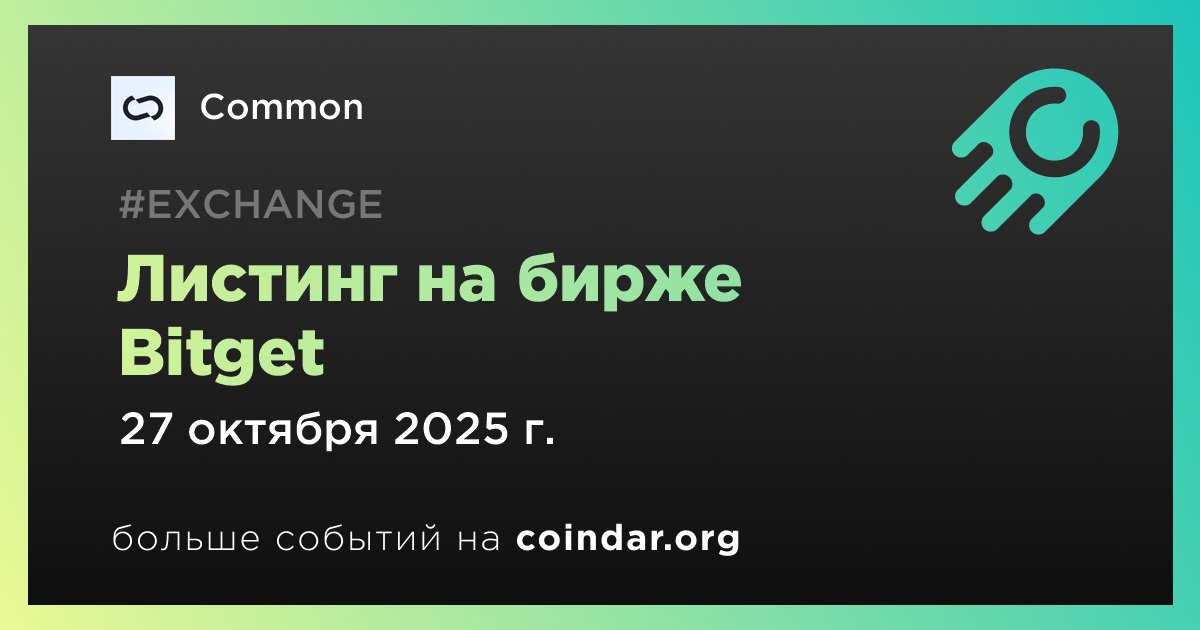 Bitget проведет листинг Common в рамках торговой пары COMMON/USDT 27 октября.