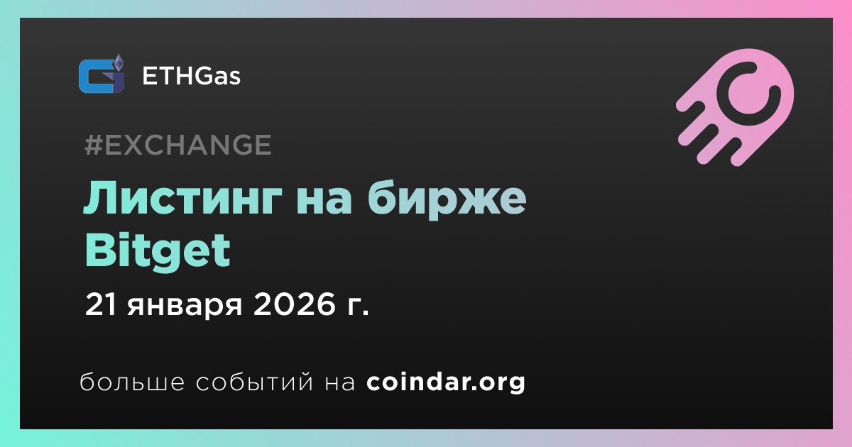 Bitget проведет листинг ETHGas (GWEI) 21 января в 14:00 по UTC.