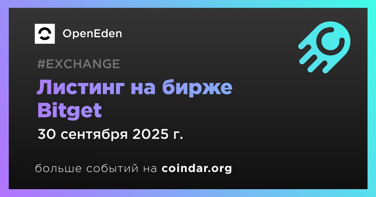 Bitget проведет листинг OpenEden в рамках торговой пары EDEN/USDT 30 сентября.