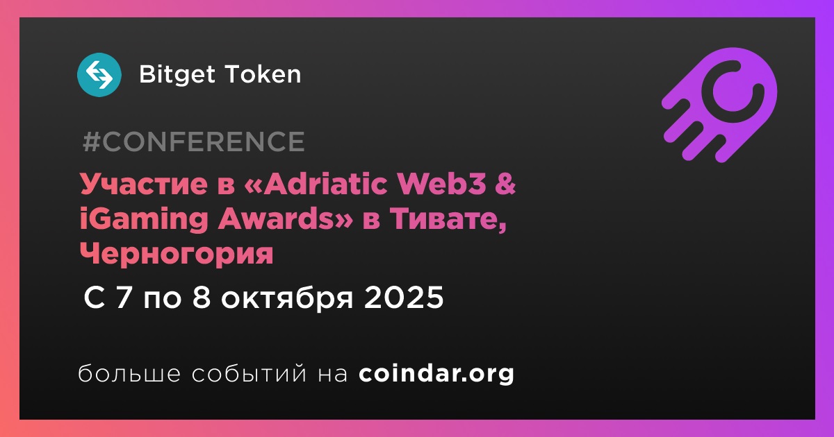 Bitget Token примет участие в «Adriatic Web3 & iGaming Awards» в Тивате 7 октября