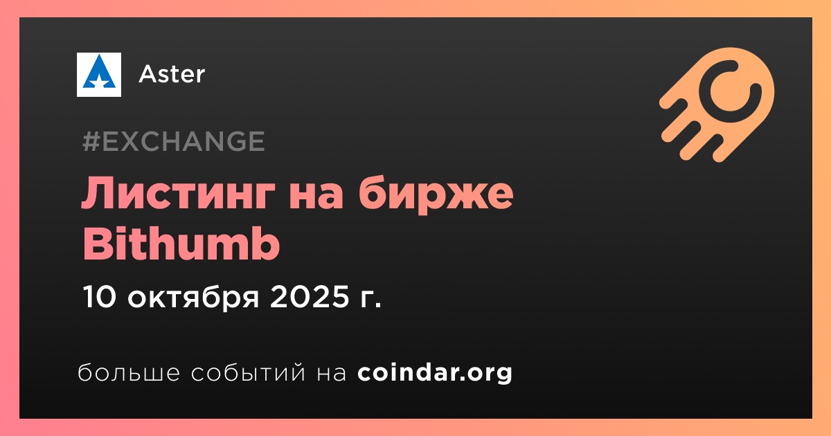 Bithumb станет 1-й по величине среди бирж, на которых представлена криптовалюта Aster