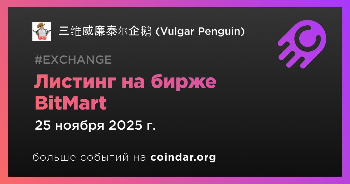 BitMart станет 8-й по величине среди бирж, на которых представлена криптовалюта 三维威廉泰尔企鹅 (Vulgar Penguin)