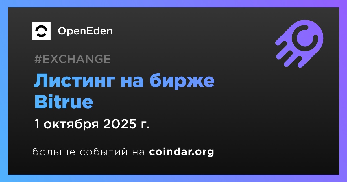Bitrue проведет листинг OpenEden (EDEN) 1 октября в 03:00 по UTC.