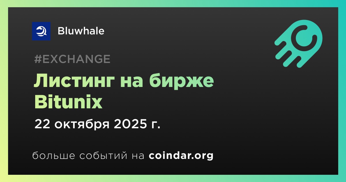 Bitunix проведет листинг Bluwhale (BLUAI) 22 октября.