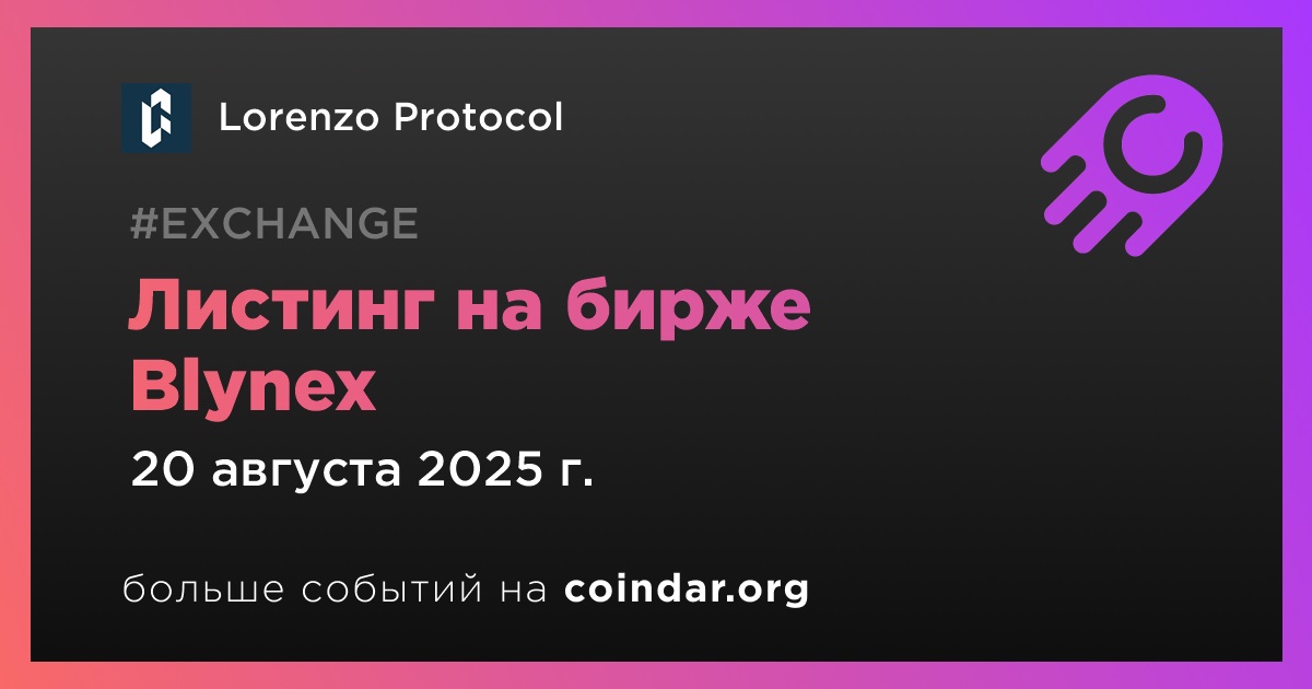 Blynex проведет листинг Lorenzo Protocol (BANK) 20 августа.