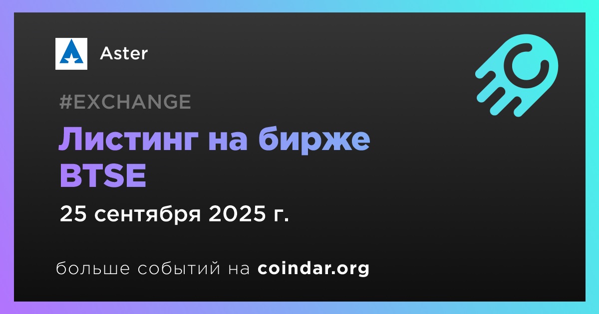 BTSE проведет листинг Aster (ASTER) 25 сентября в 8:00 по UTC.