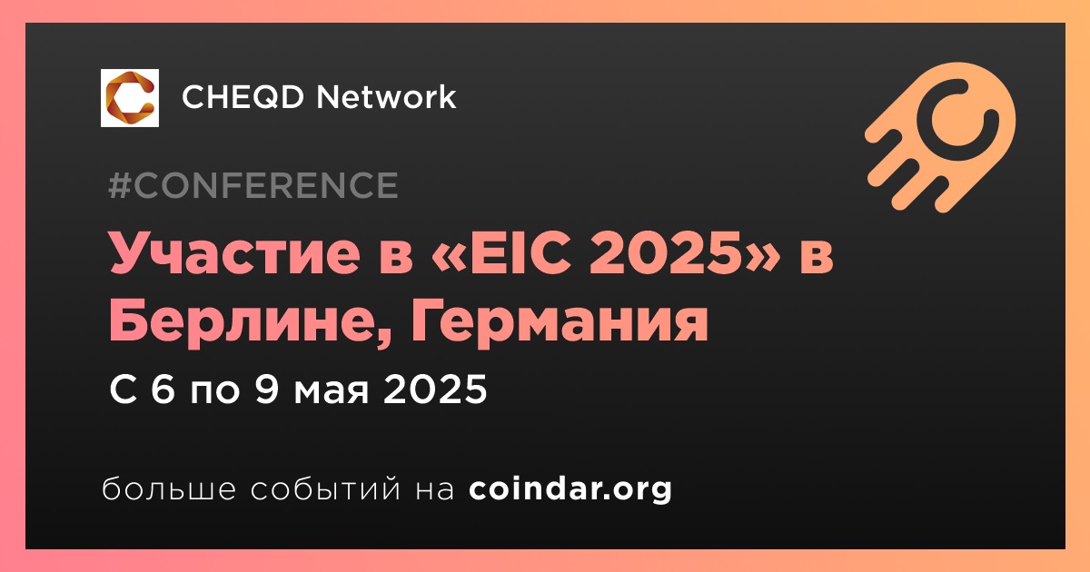 CHEQD Network примет участие в конференции «EIC 2025», которая пройдет в Берлине с 6 по 9 мая. 9 мая CHEQD Network примет участие в обсуждении темы самосуверенной идентичности, которую контролируют предприятия. Ключевой акцент будет сделан на тему «За пределами EUDI: принятие, бизнес-модели и захват ценности».