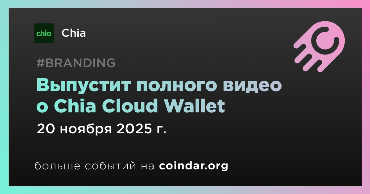 Chia выпустит полное видео о Chia Cloud Wallet 20 ноября
