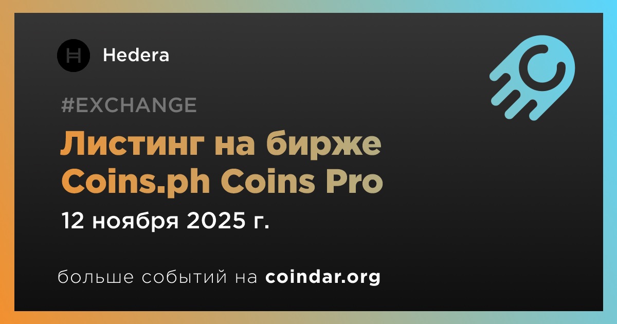 Токен HBAR сети Hedera был добавлен на спотовый рынок Coins.ph Coins Pro 12 ноября.