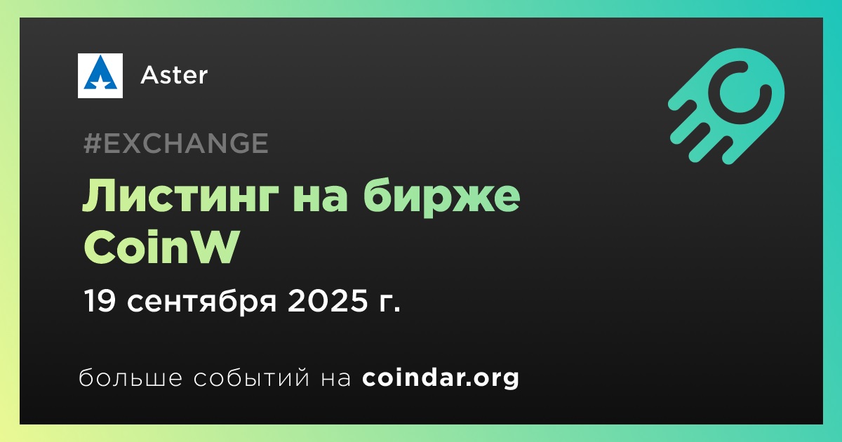 CoinW проведет листинг Aster (ASTER) 19 сентября.