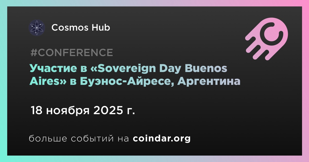 Cosmos Hub примет участие в «Sovereign Day Buenos Aires» в Буэнос-Айресе. В качестве одного из спикеров выступит Антонио Нето, руководитель по росту Solana Foundation в Латинской Америке и бывший президент Ethereum Brasil. Мероприятие запланировано на 18 ноября.