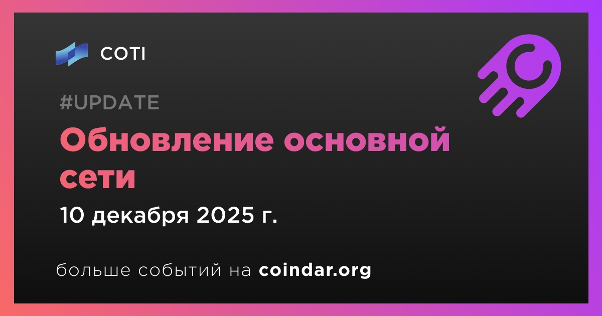 COTI проведёт обновление основной сети 10 декабря в 10:00 по UTC. На протяжении около трёх часов выпуск блоков будет приостановлен, при этом пользователям не требуется предпринимать какие-либо действия, а средства останутся в безопасности. После завершения работ проект сообщит о полном восстановлении сети.