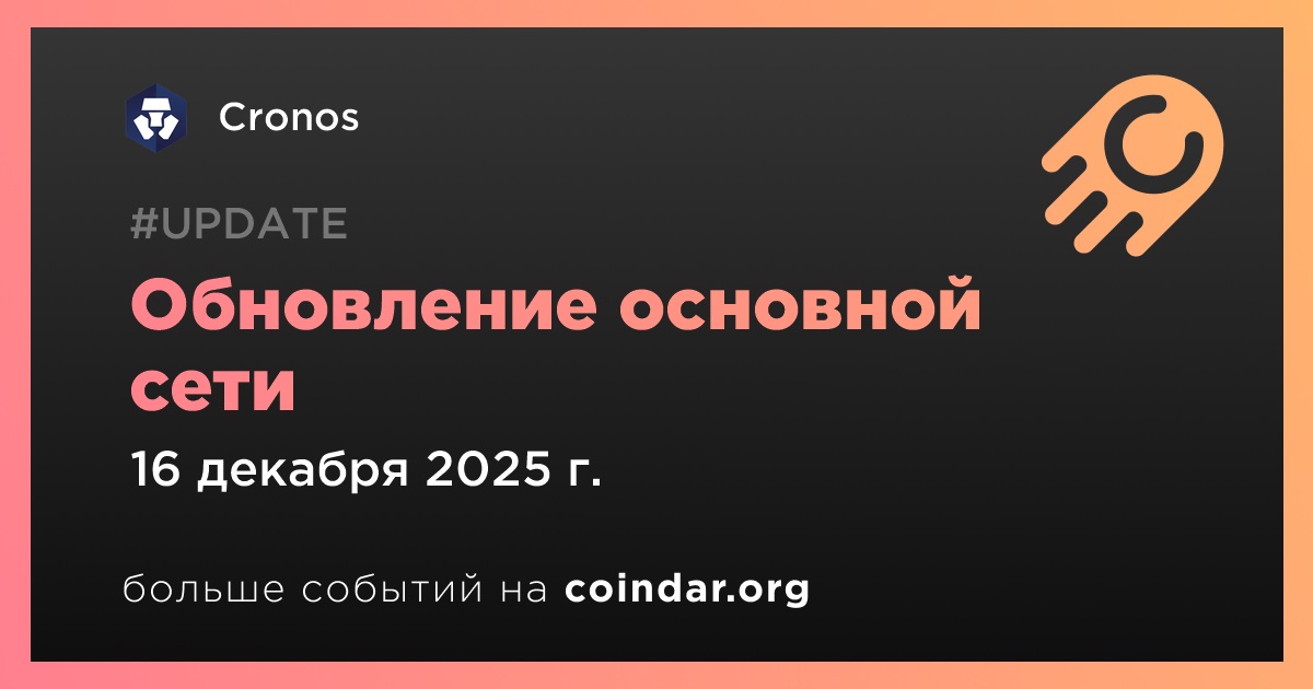 Cronos проведёт обновление сети 16 декабря в 07:00 по UTC. Время недоступности сети — около 30 минут. Точные время и высота блока будут уточнены позже. Пользователям и операторам нод необходимо ознакомиться с обязательными действиями в официальной документации.