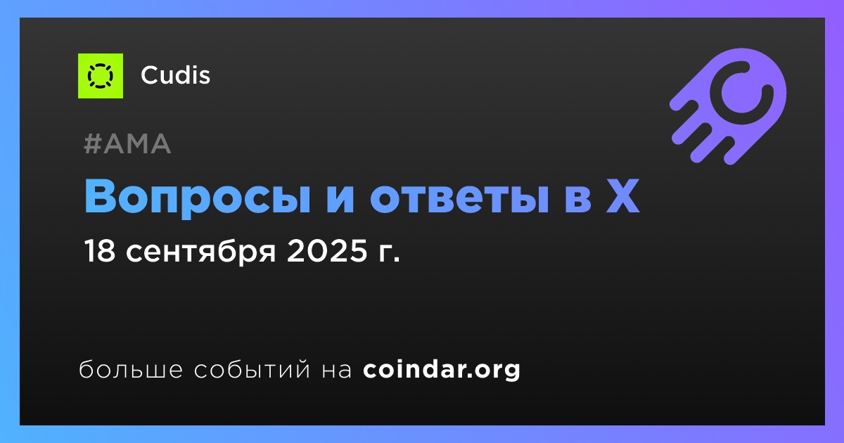 Cudis проведет сессию вопросов и ответов в X 18 сентября в 11:00 по UTC. В повестке дня будут обсуждаться последние обновления продукта, предстоящее участие в «Korea Blockchain Week» в Сингапуре и объявление победителей конкурса CUDIS Style.