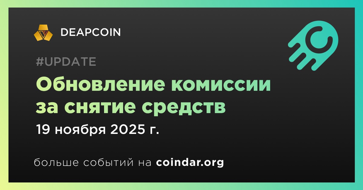 DEAPCOIN обновит комиссию за снятие средств 19 ноября