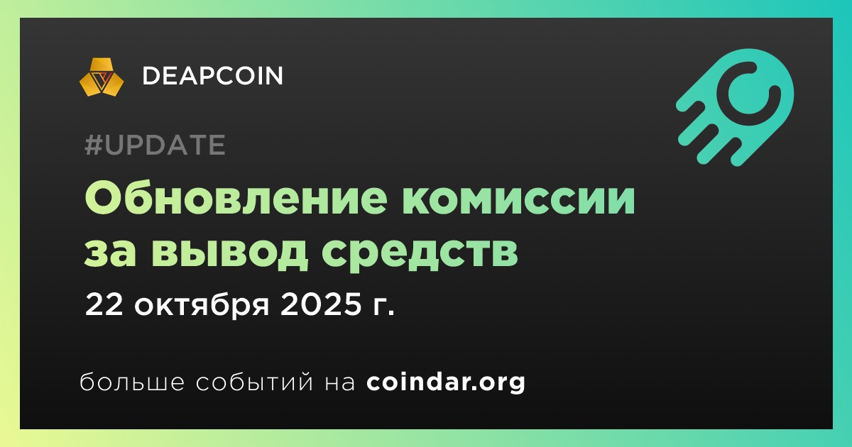 DEAPCOIN обновляет комиссии за вывод средств с 22 октября