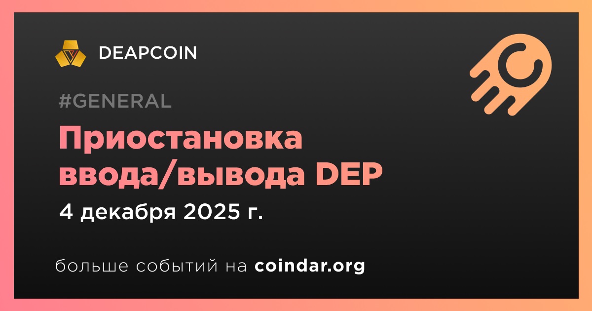 DEAPCOIN приостановит ввод/вывод DEP во время хард форка Ethereum 3 декабря