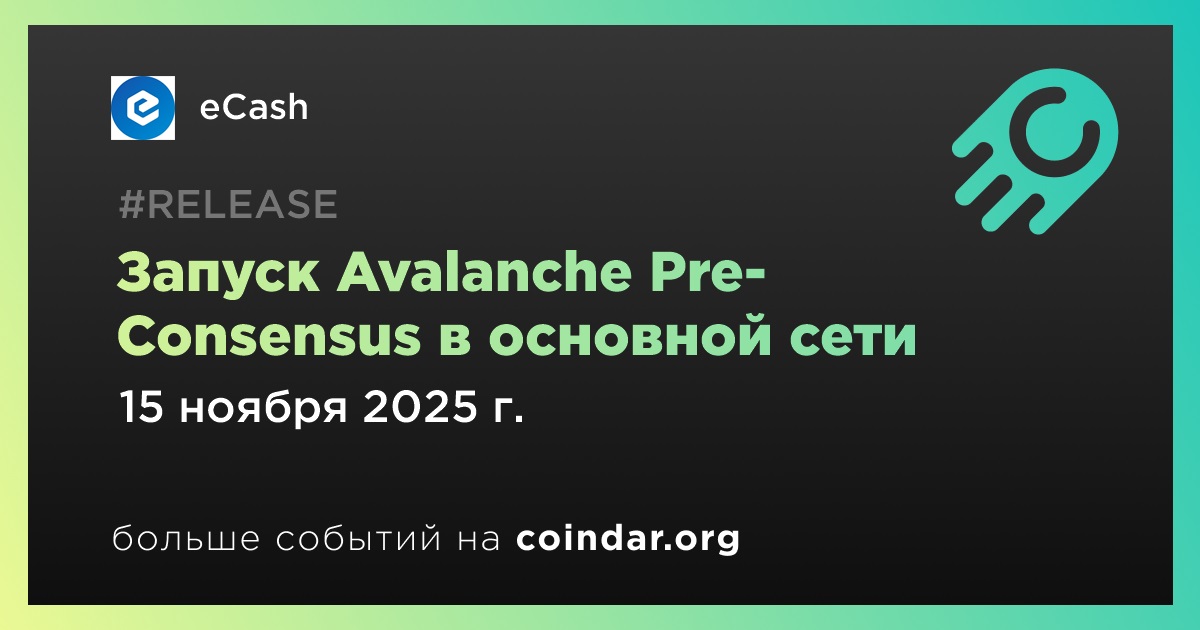 На конференции «ECC 2025» основатель eCash Амори Сеше объявил, что обновление Avalanche Pre-Consensus будет запущено в основной сети 15 ноября. Оно обеспечит мгновенное подтверждение и обработку транзакций в реальном времени, став важным этапом технического развития сети.