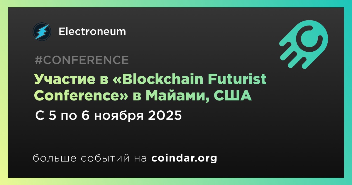 Electroneum примет участие в конференции «Blockchain Futurist Conference», которая пройдет в Майами 5-6 ноября.