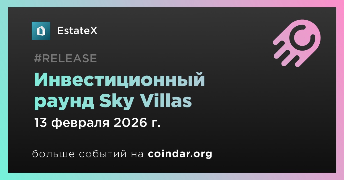 EstateX подтверждает запуск инвестиционного раунда проекта Sky Villas 13 февраля. Инициатива реализуется в партнерстве с FELS при поддержке бывшего управляющего фонда Deutsche Bank.