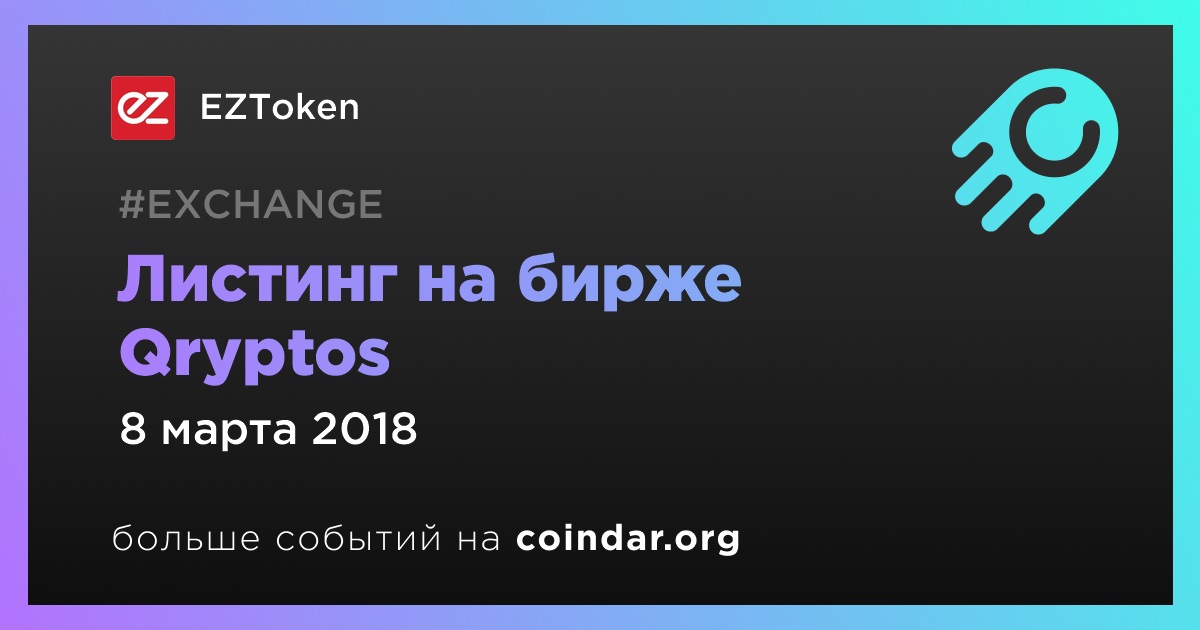 We are so happy to announce that EZToken will be listed on the second Public Exchange - Qryptos - on Mar 8th, 2018.