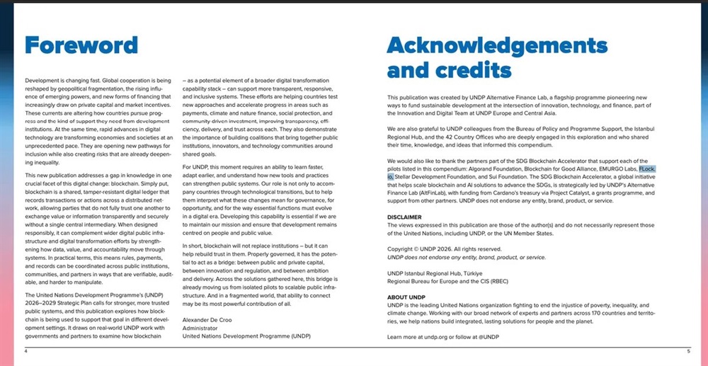 FLOCK назначен стратегическим партнёром по искусственному интеллекту Программы развития ООН и примет участие в пилотных проектах SDG Blockchain Accelerator, отражённых в отчёте «Новые технологии, новые партнёры: трансформация развития в цифровую эпоху», опубликованном в январе 2026 года.