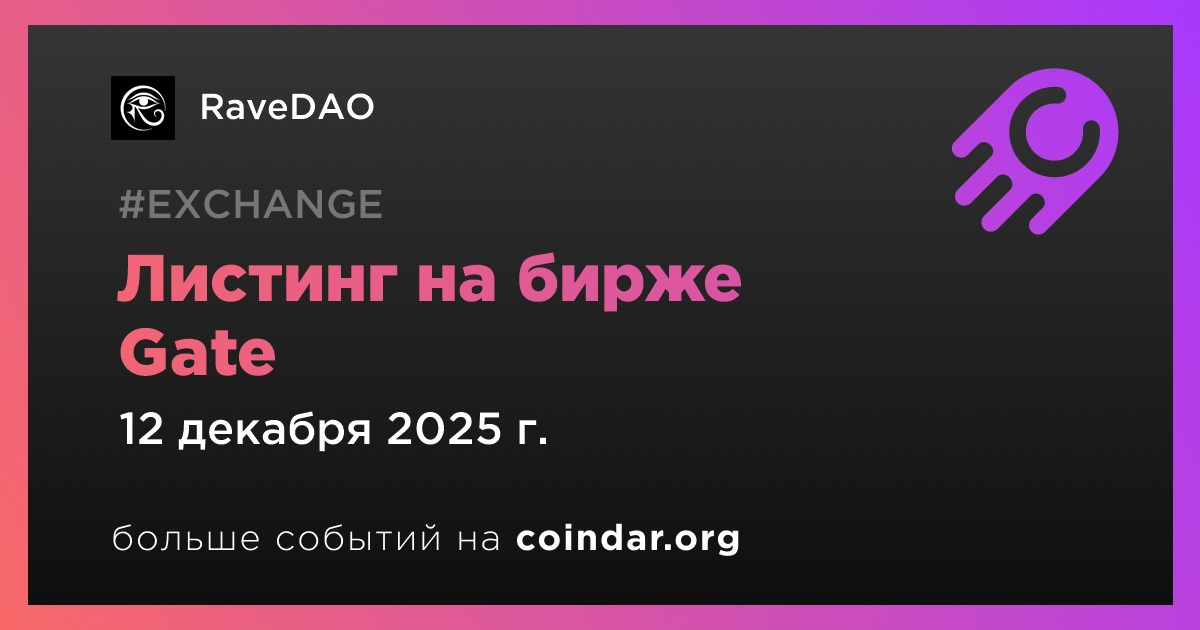 Gate проведет листинг RaveDAO в рамках торговой пары RAVE/USDT 12 декабря в 14:00 по UTC.