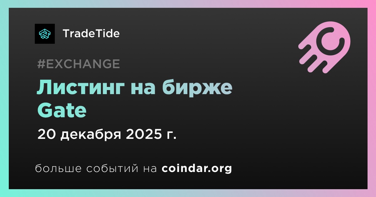 Gate проведет листинг TradeTide (TTD) 20 декабря в 10:00 по UTC.