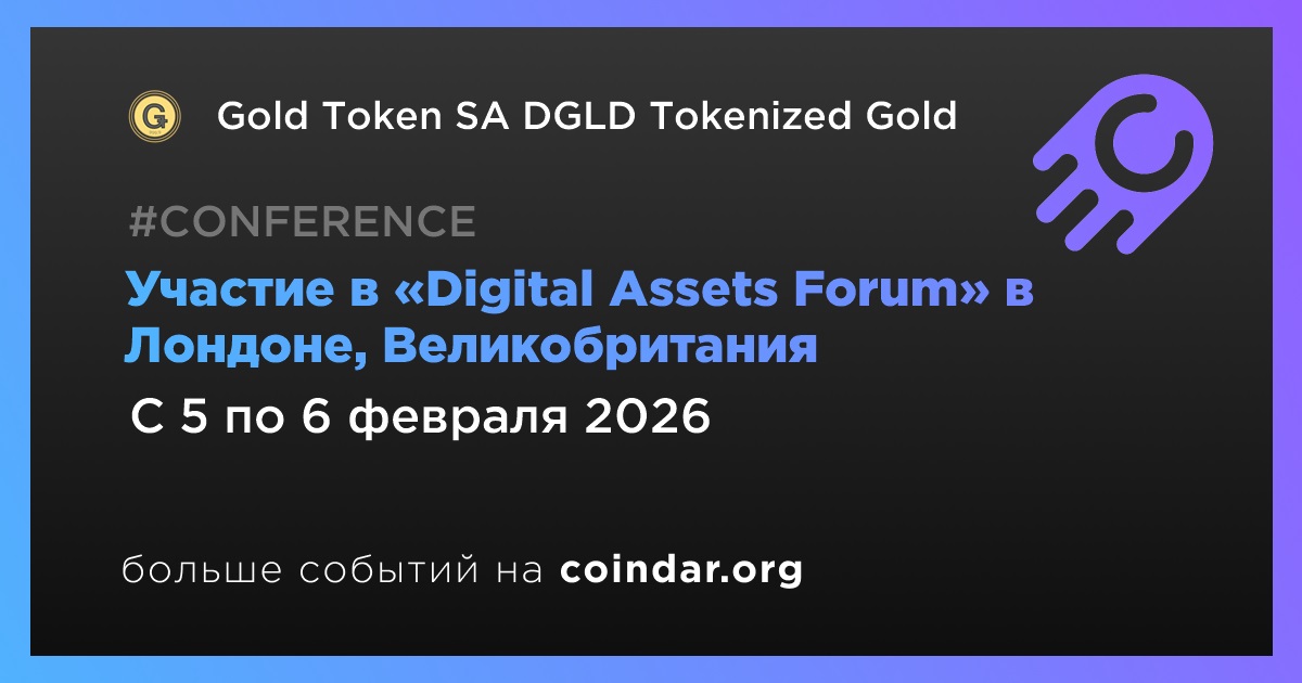 Gold Token SA DGLD Tokenized Gold примет участие в Digital Assets Forum в Лондоне 5–6 февраля 2026 года. Представитель компании Ричард Бриффод выступит на панельной дискуссии, посвященной масштабируемой токенизации на реальных рынках.