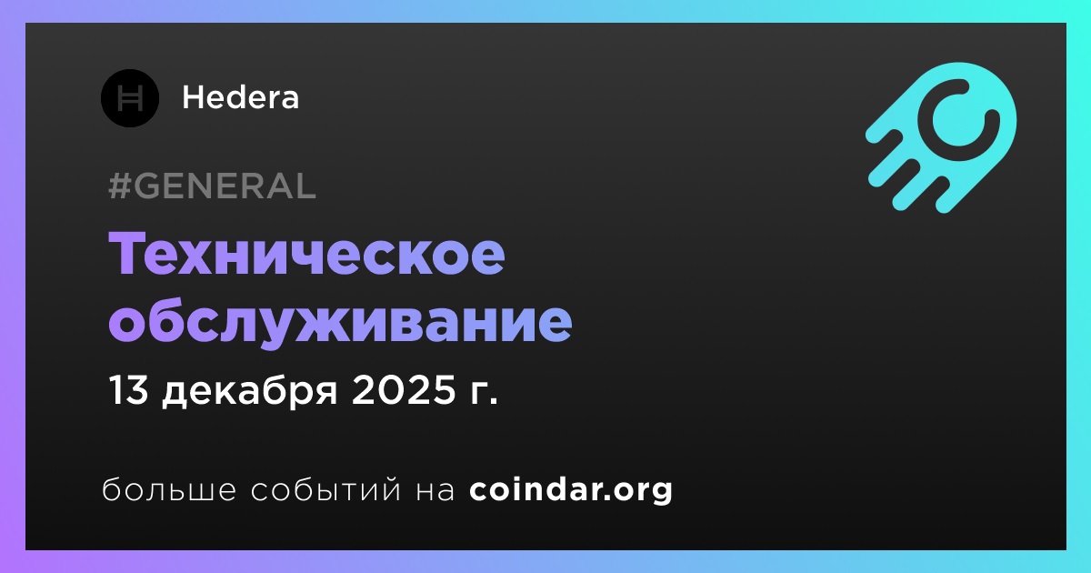 Hedera проведет техническое обслуживание 13 декабря в 06:30 по UTC. В этот период возможны временные перебои в работе сервисов, связанные с применением рутинных обновлений.