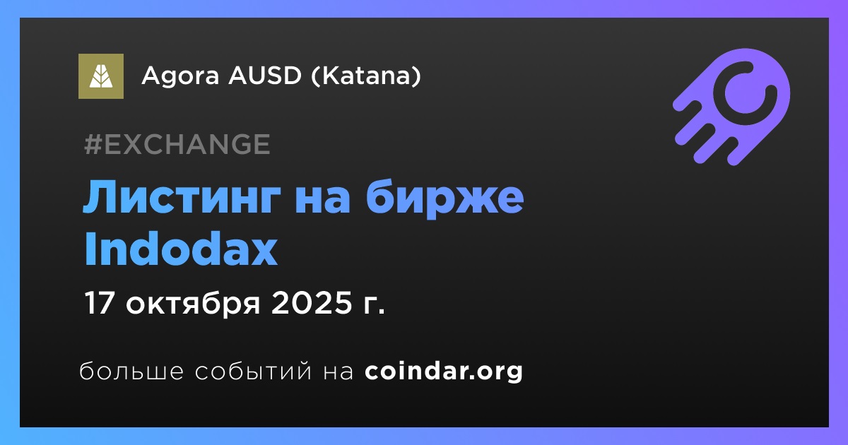 Indodax проведет листинг Agora AUSD (Katana) 17 октября в 7:00 по UTC.