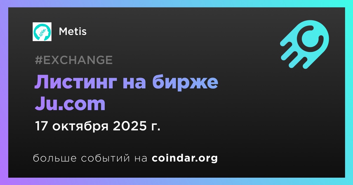 Ju.com проведет листинг Metis в рамках торговой пары METIS/USDT 17 октября.