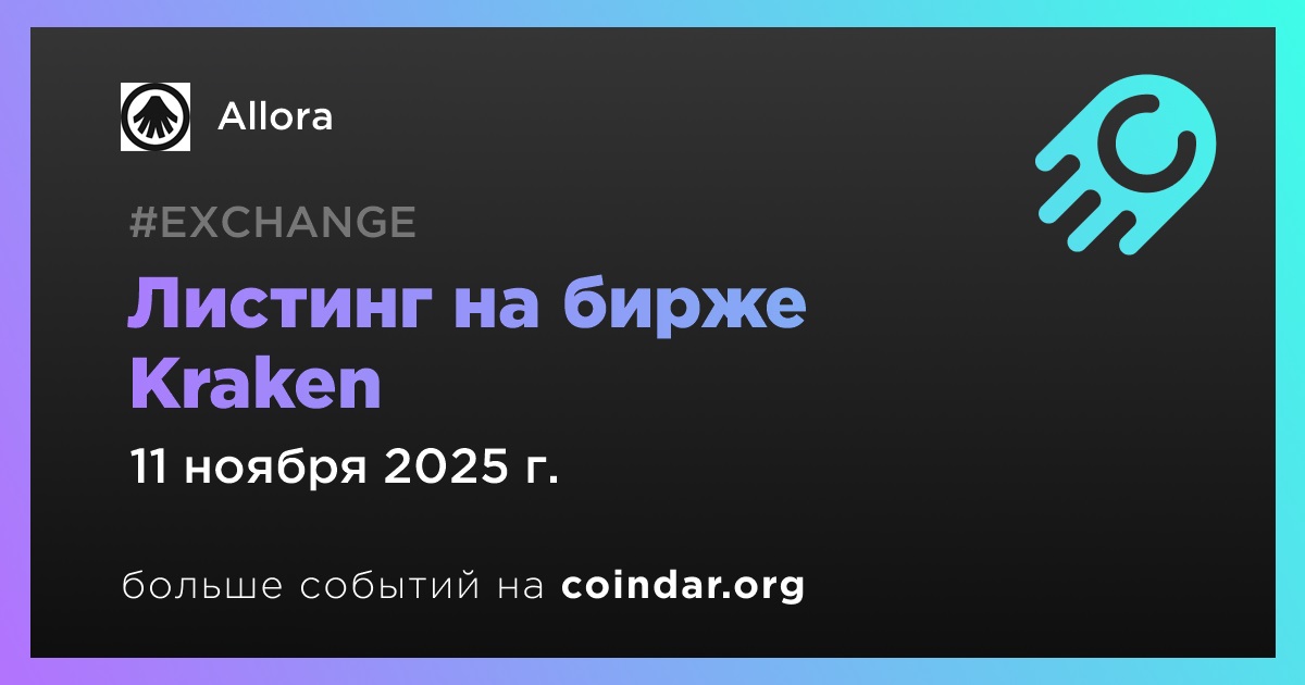 Kraken проведет листинг токена ALLO (Allora), начало торгов назначено на 11 ноября в 13:00 UTC.