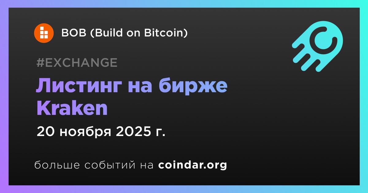 Kraken проведет листинг BOB (Build on Bitcoin) (BOB) 20 ноября.