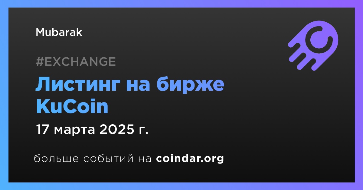 KuCoin проведет листинг Mubarak (MUBARAK) 17 марта.