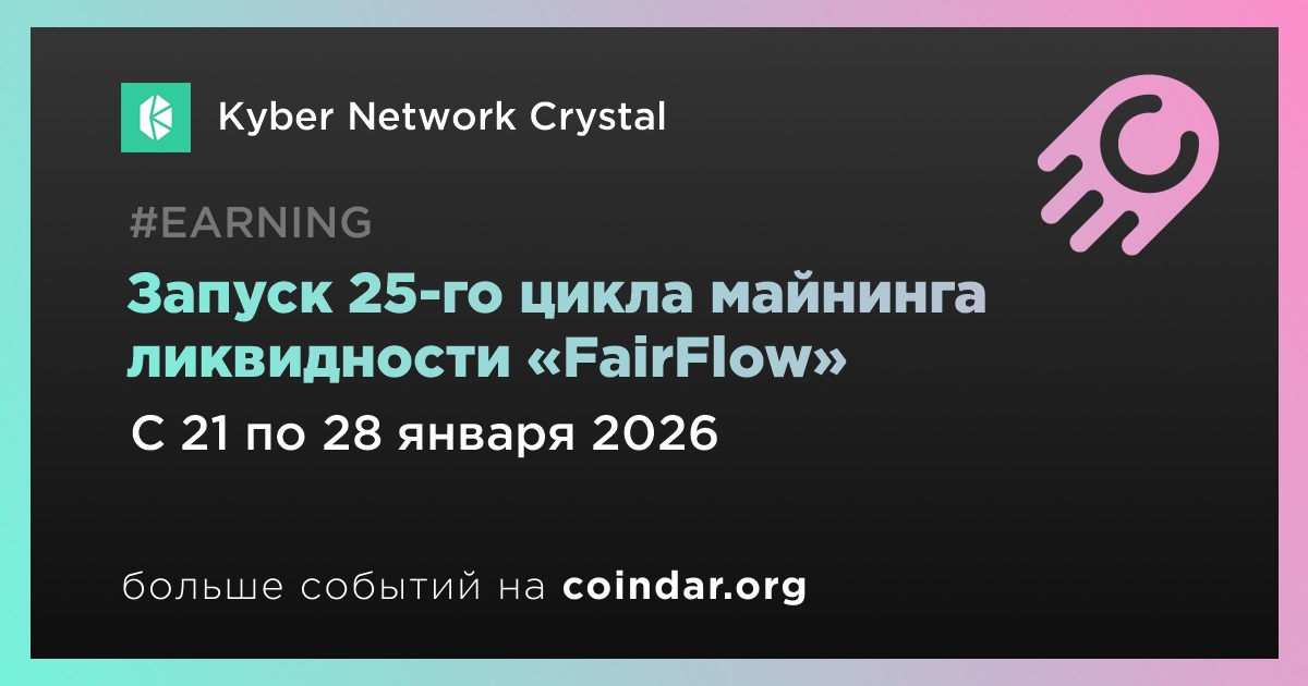 Kyber Network Crystal запускает 25-й цикл программы FairFlow Liquidity Mining, который пройдет с 21 по 28 января. Программа доступна в сетях Ethereum, BNB Chain, Arbitrum и Base. Общий объем вознаграждений составляет 24 000 KNC, также предусмотрены дополнительные стимулы. Условия участия и параметры пулов определяются протоколом.