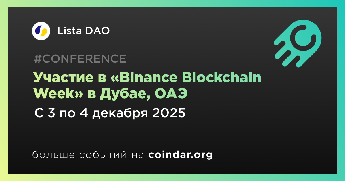Lista DAO примет участие в «Binance Blockchain Week», которая пройдет на 3-4 декабря в Дубае.