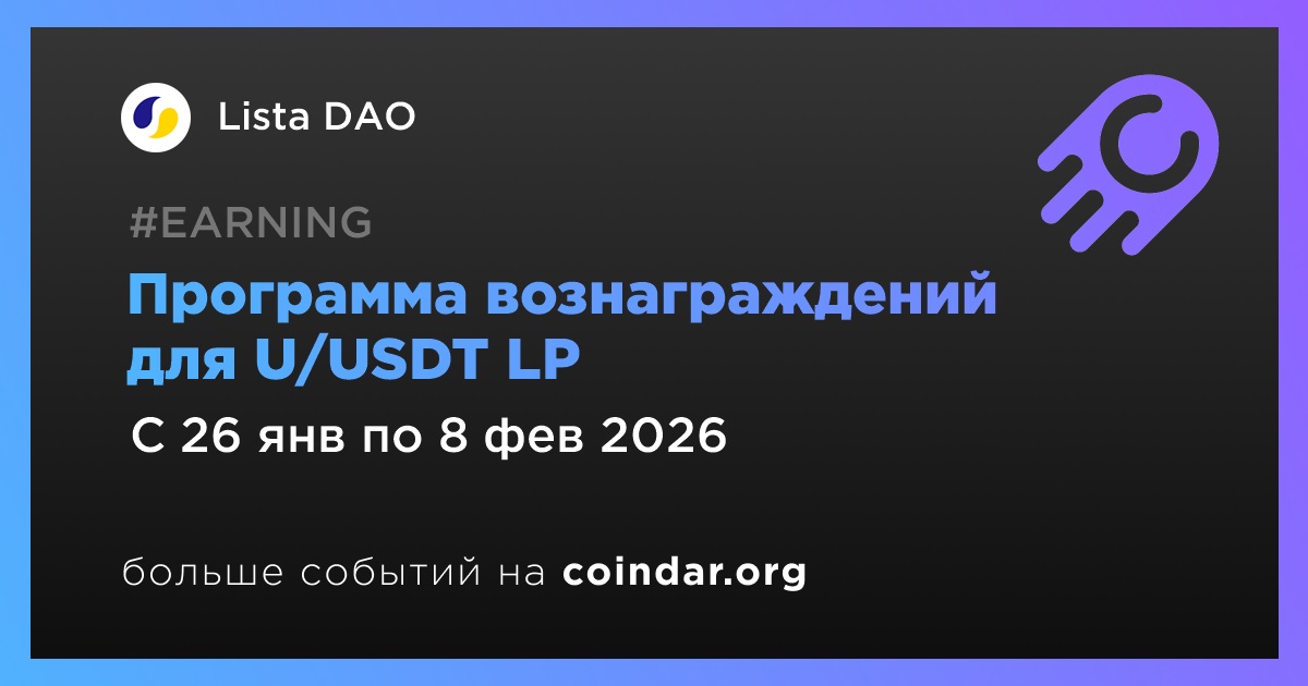 Lista DAO запускает программу вознаграждений для LP-поставщиков пары U/USDT через расширение Binance Wallet с 26 января, 00:00 по UTC. Общий объём распределения составляет 240 000 LISTA, минимальный порог участия — $10 LP. Кампания продлится до 8 февраля, 23:59 по UTC.
