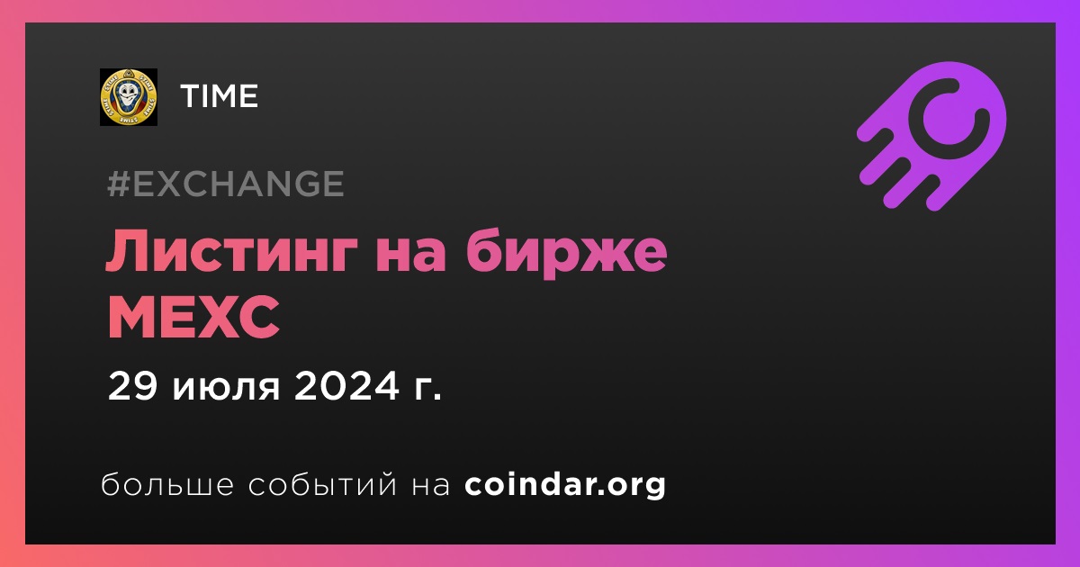 MEXC проведет листинг TIME (TIME) 29 июля в 15:00 по UTC.